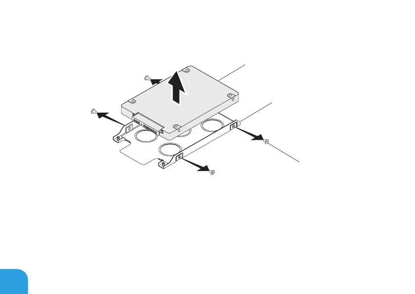 11. Remove the four screws that secure the hard drive to the hard‑drive bracket.