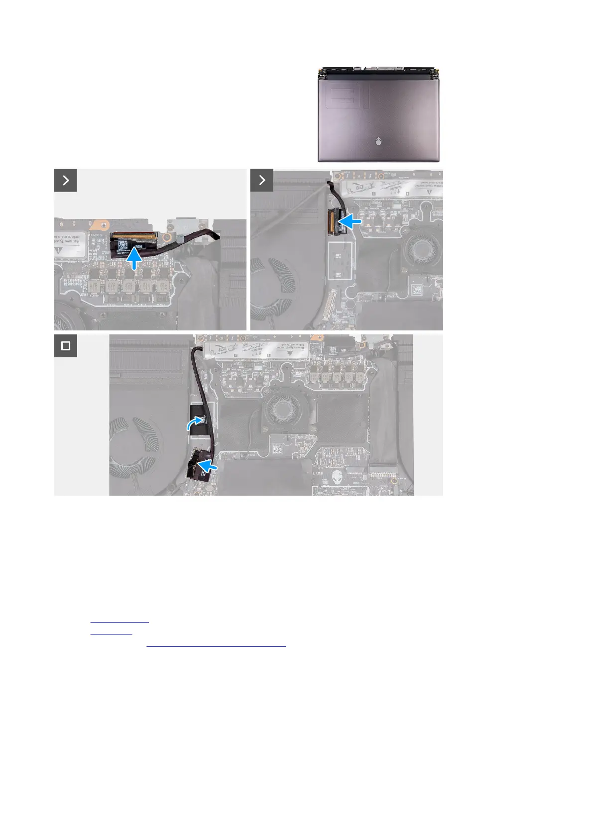 7. Connect the display cable to the system board and close the latch to secure the cable.
