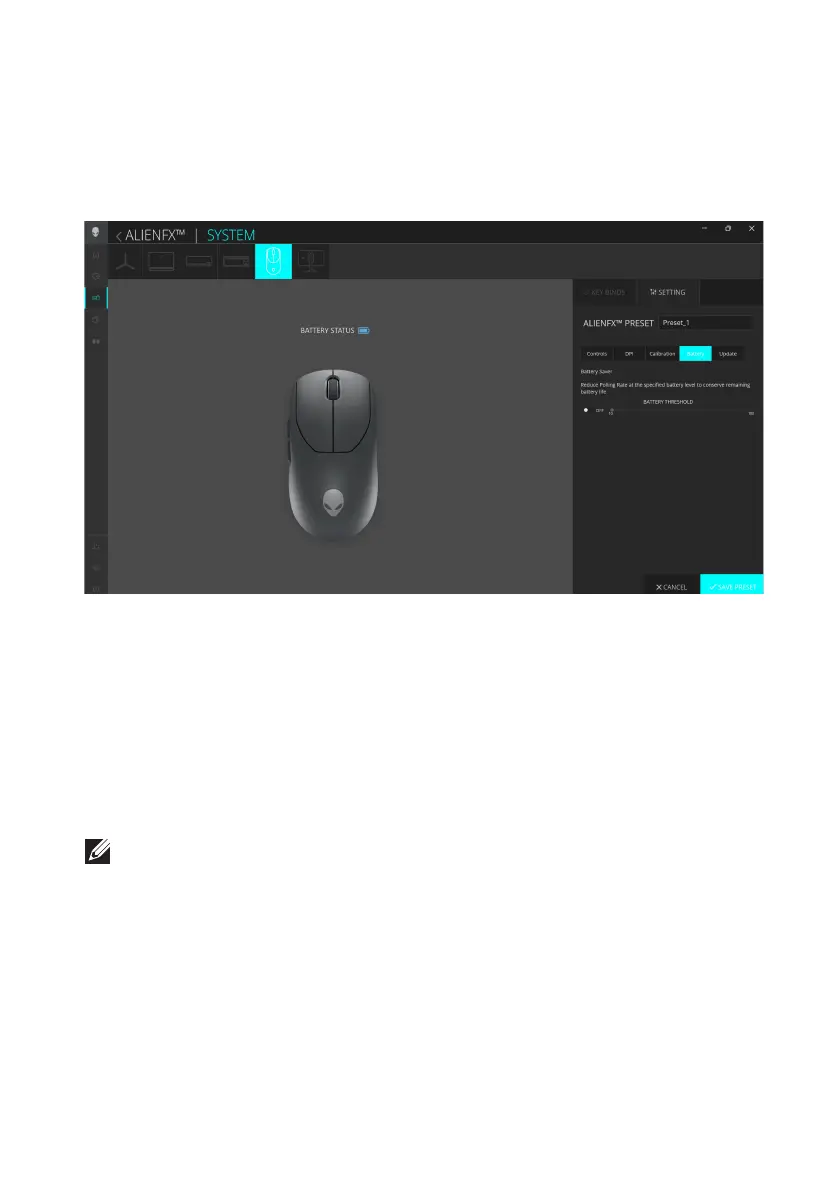 NOTE: The polling rate of the mouse is set to 1KHz when Battery Saver mode is