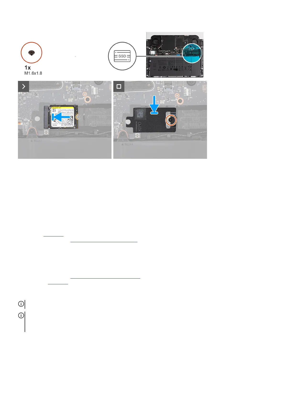 4. Align the screw hole on the solid-state drive thermal shield with the screw hole on the solid-state drive and palm-rest and