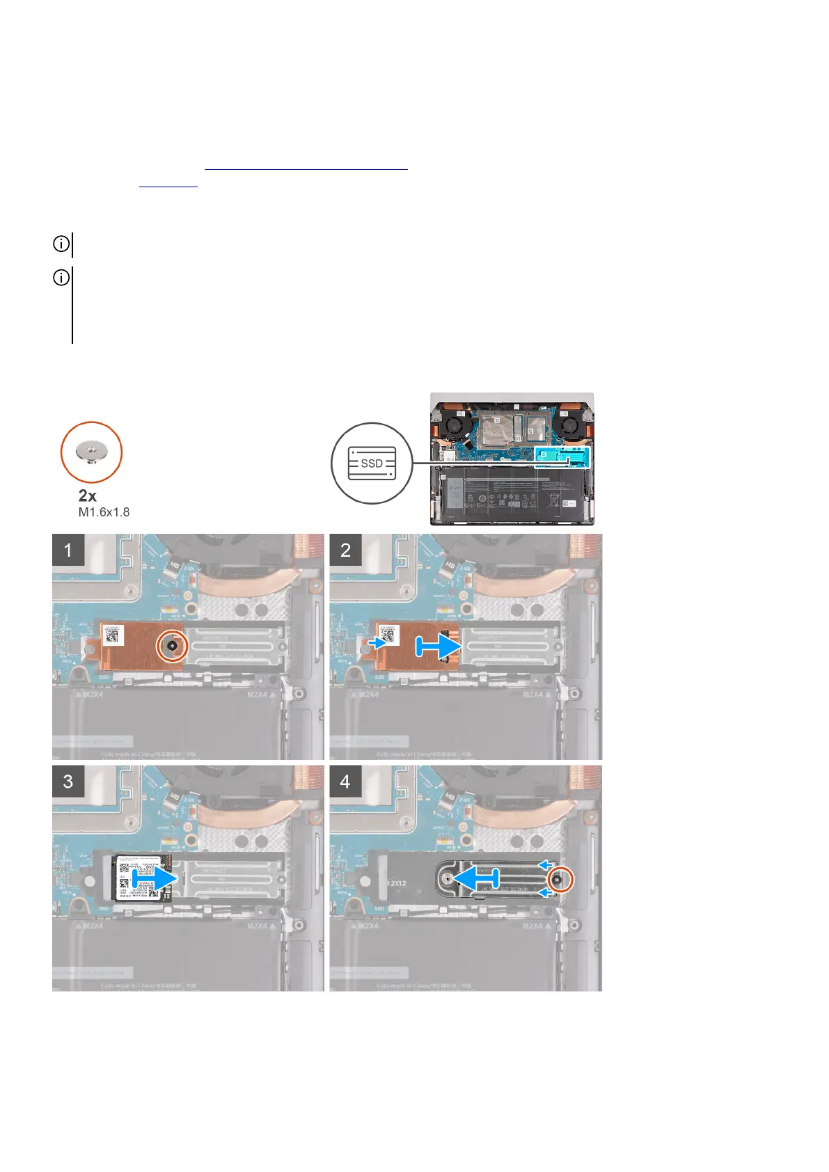The following image(s) indicate the location of the M.2 2230 solid-state drive and provides a visual representation of the removal