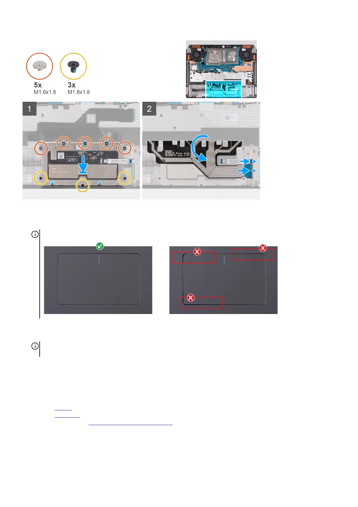 touchpad while the three black screws (M1.6x1.8) with smaller heads need to be secured along the bottom side.