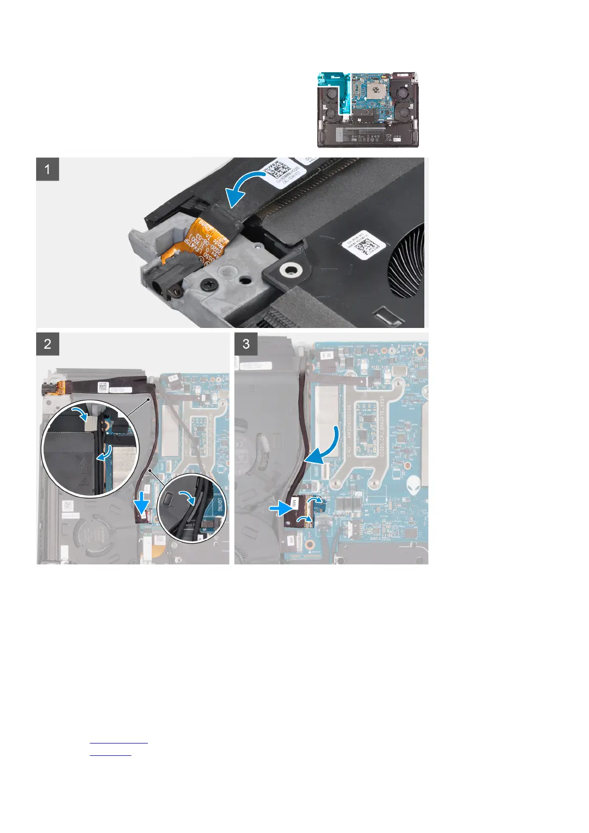 4. Route the headset-port cable through the routing guides on the fan and heat-sink assembly.