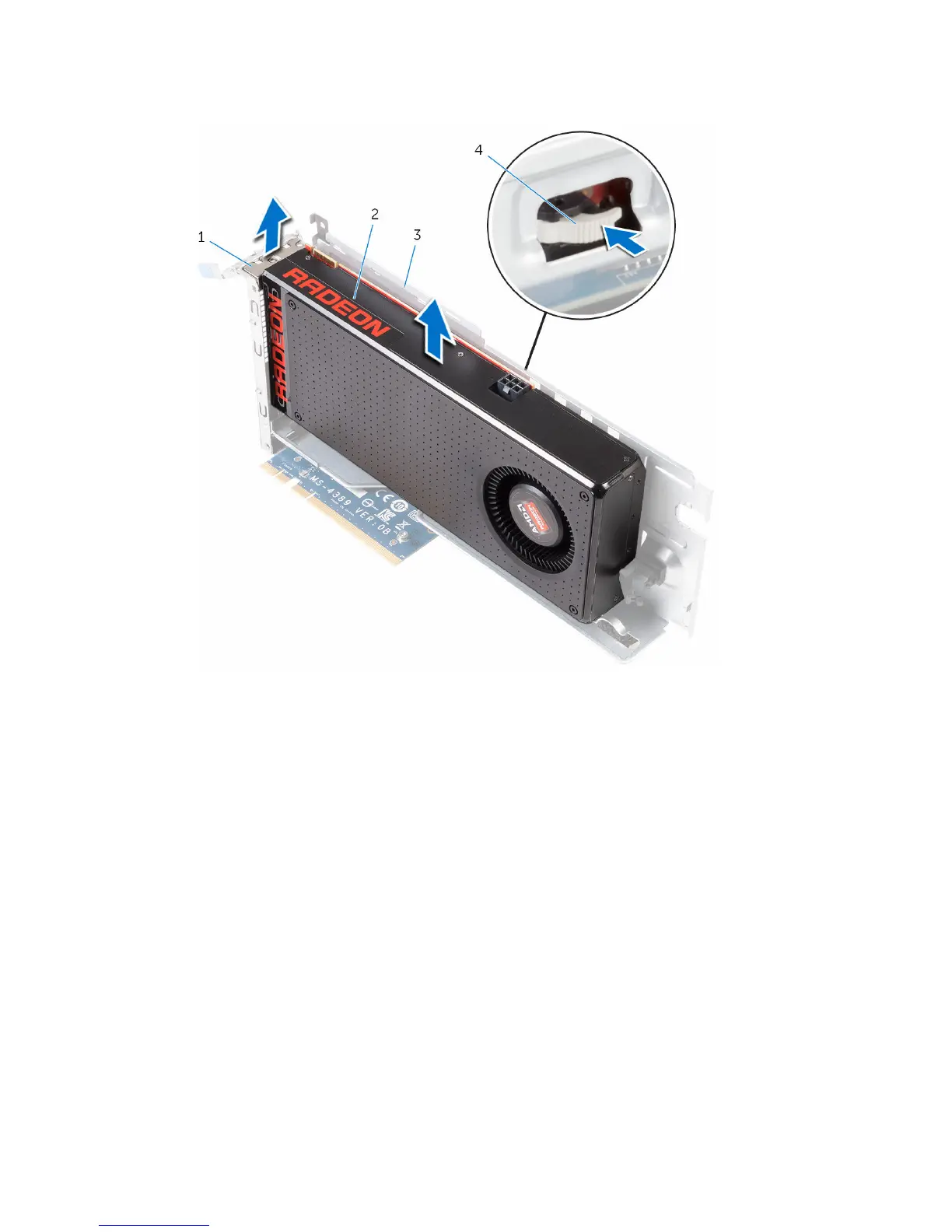 7 Press down the PCI x16 express card latch and lift the graphics-card