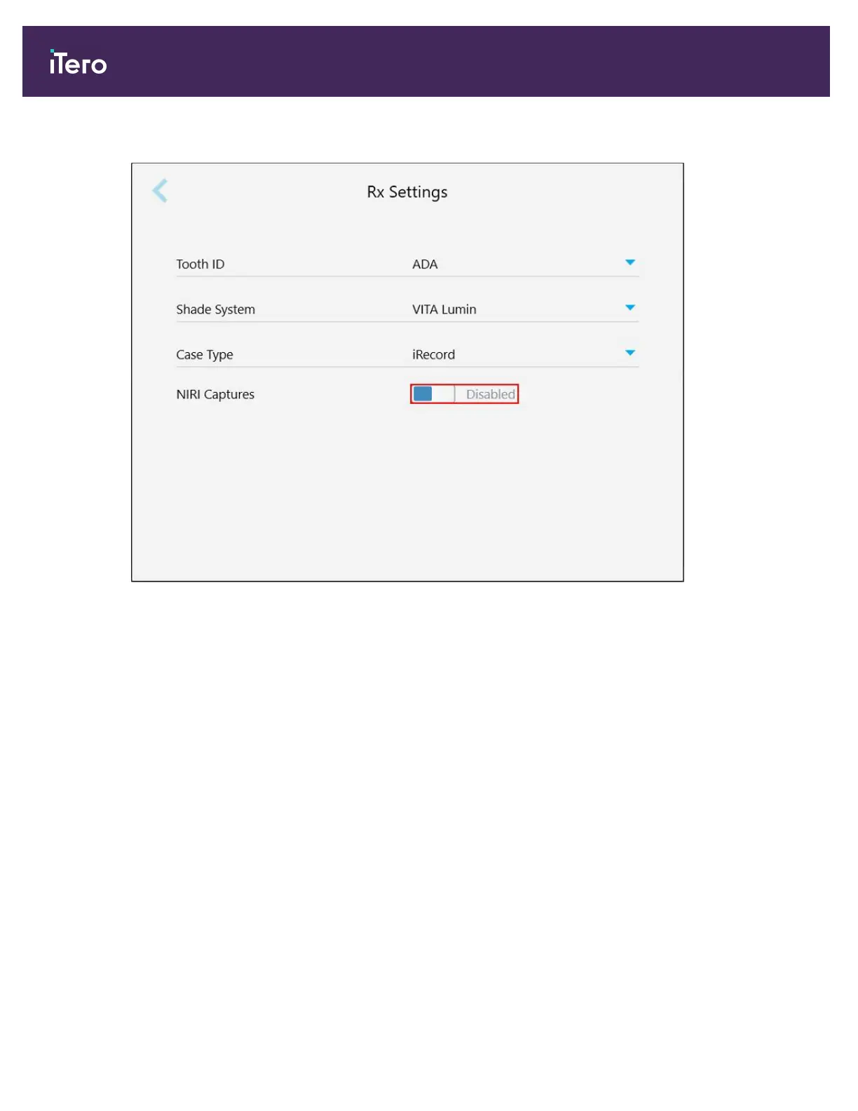 Align Technology iTero Element 5D - Figure 68: Rx Settings Window - NIRI Captures Option Disabled