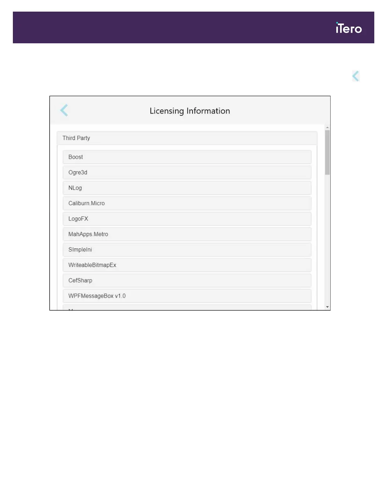 Tap the Licenses button to view a list of third-party software components installed on the scanner and then tap