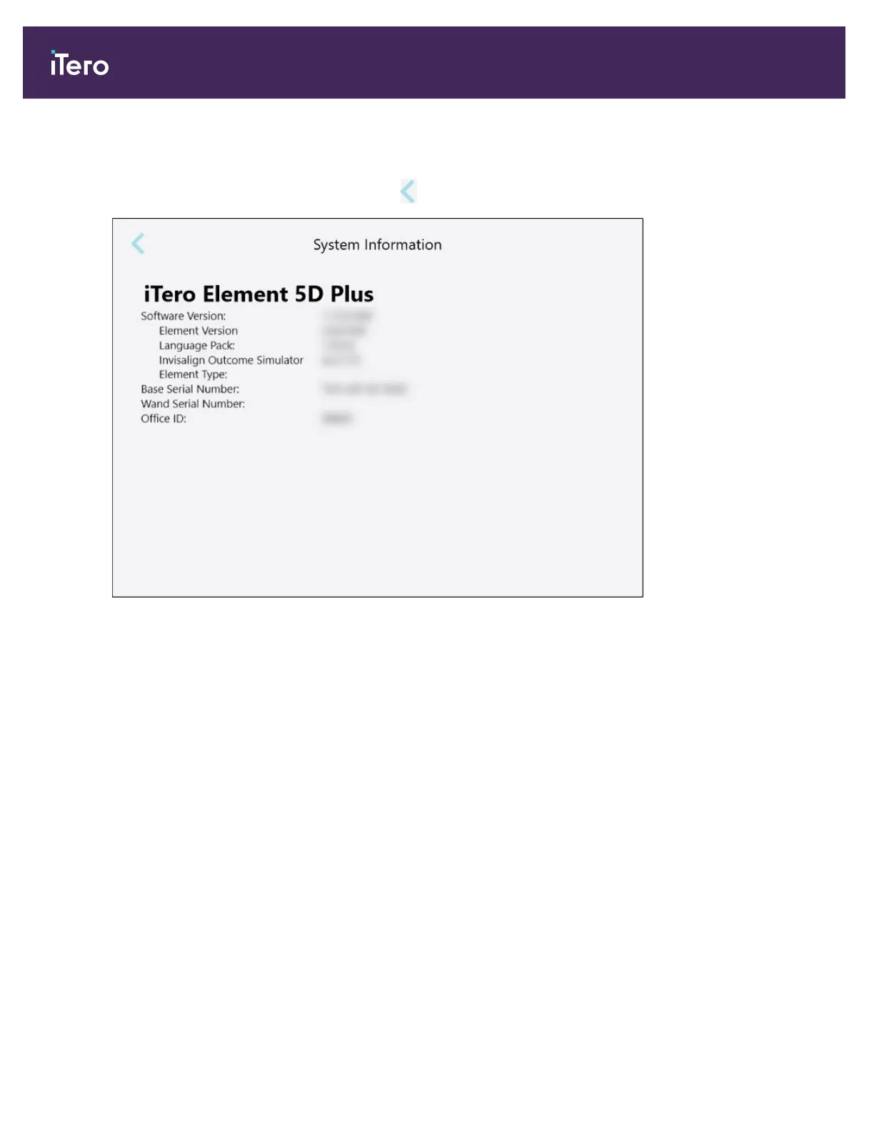 Figure 74: System Information window – iTero Element 5D Plus
