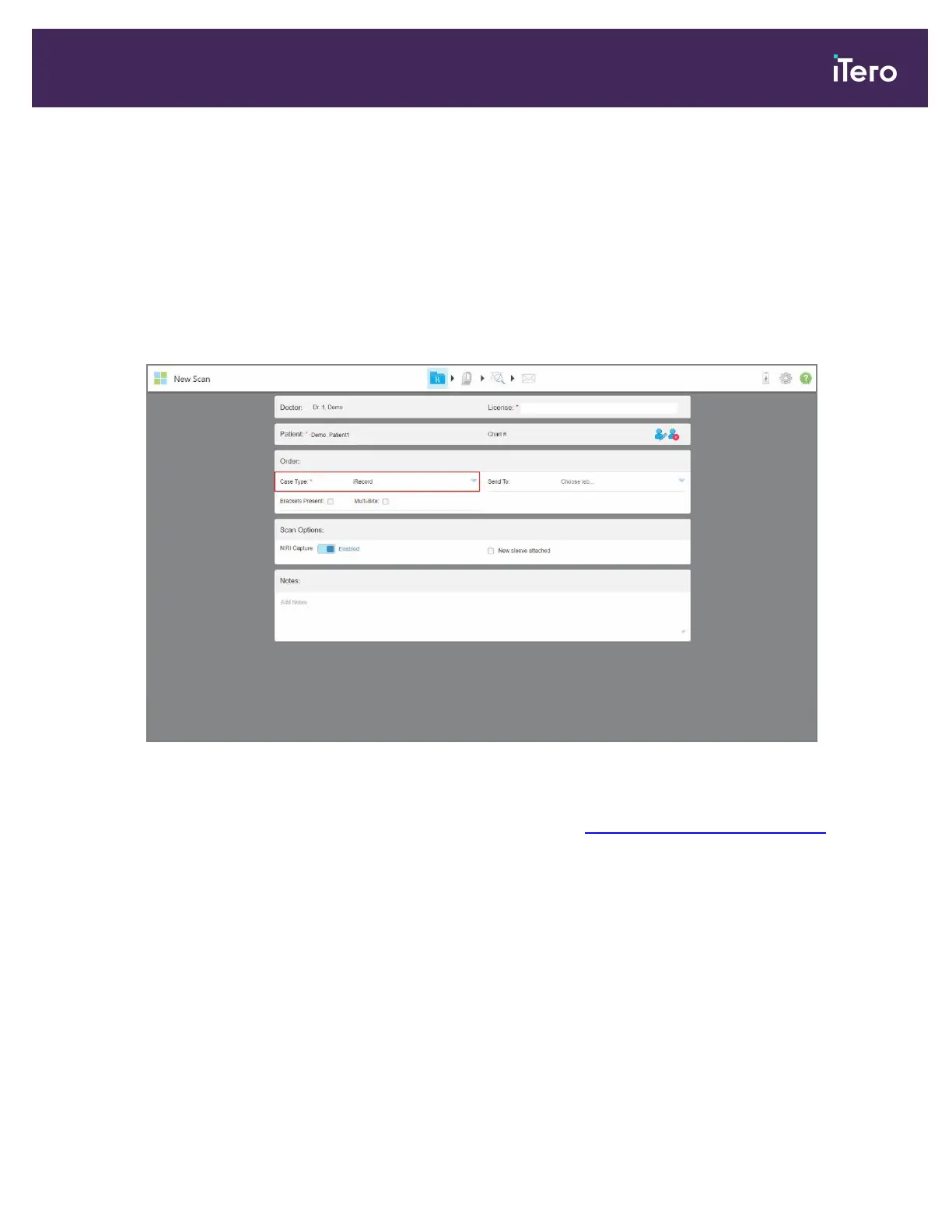 4. If relevant, from the Send To drop-down list, select the lab to which the scan should be sent.