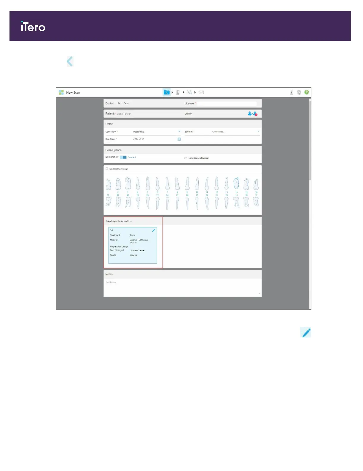 You can change the selected treatment options at any time before sending the scan by tapping .