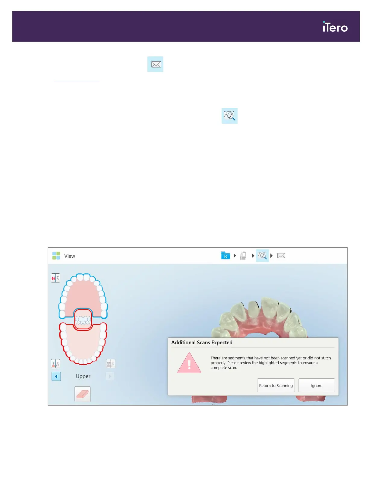 If there are missing scan segments or bite scans when you tap the button, you will be notified at the