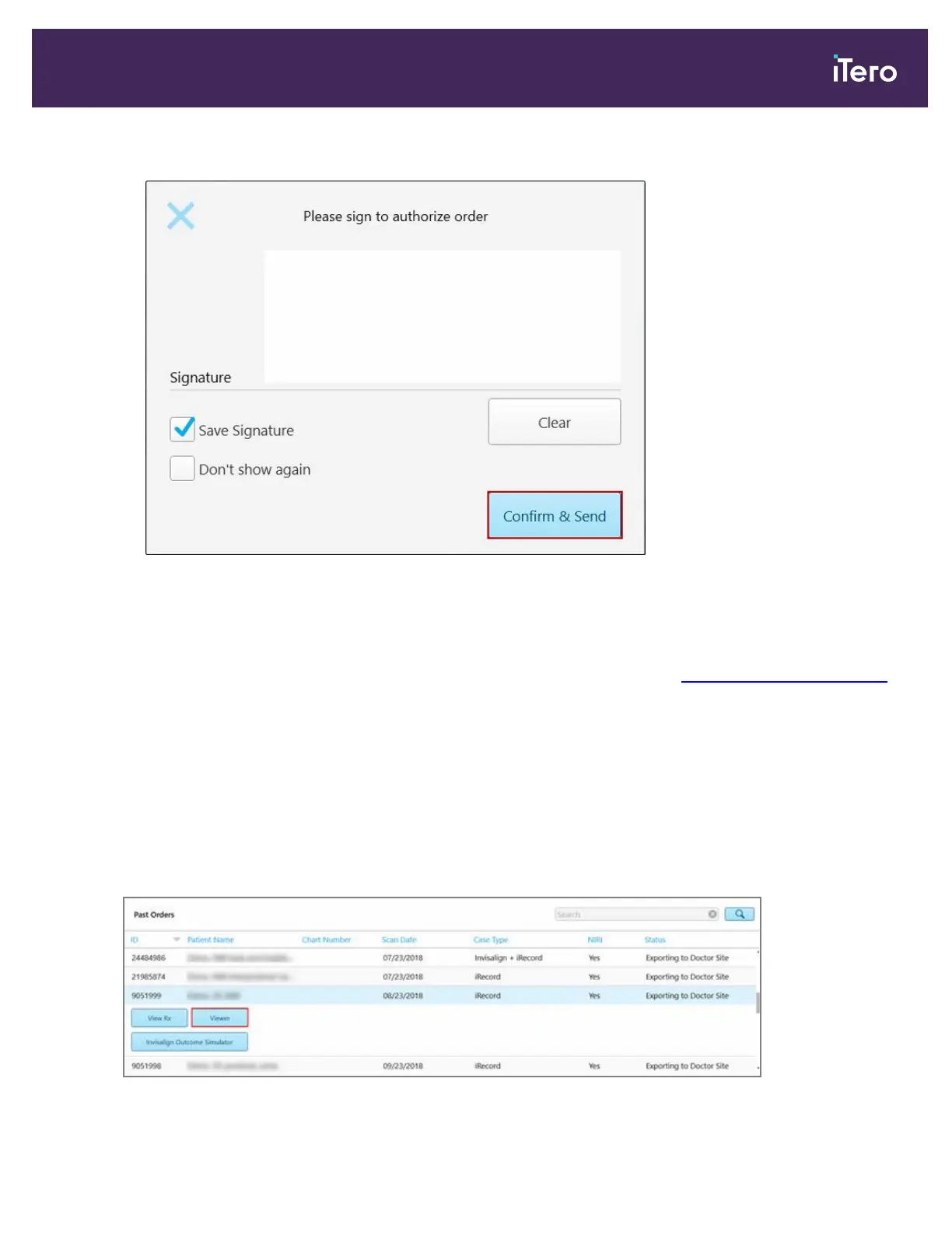 The Viewer can be accessed from Past Orders in the Orders page, or from a specific patient’s profile page.