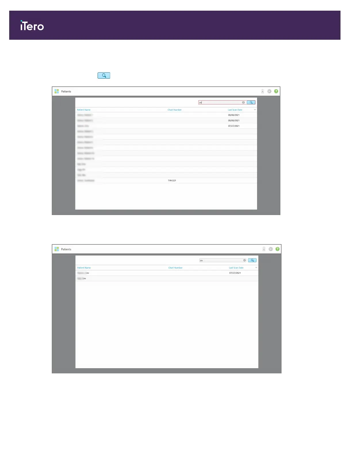 In the Patients page, enter the patient’s name or chart number (or part thereof) in the search field and then tap