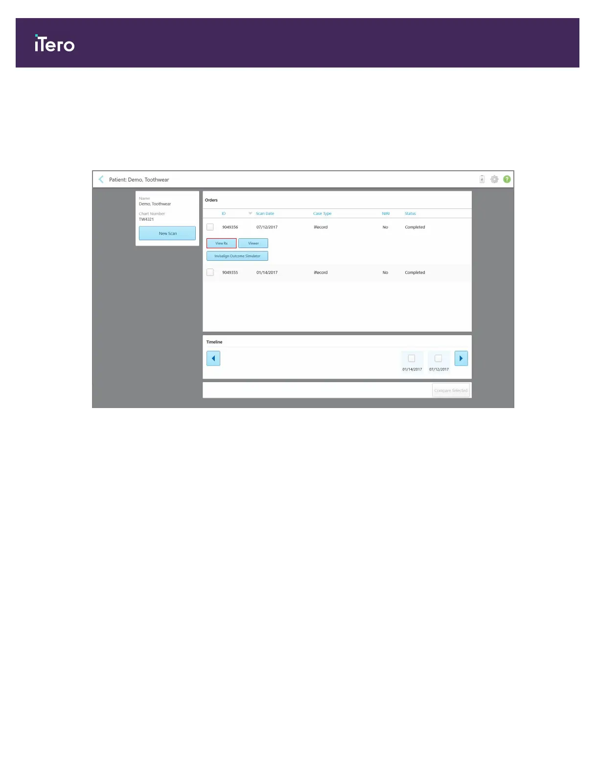 Note: The NIRI column is not displayed for iTero Element 5D Plus Lite systems.
