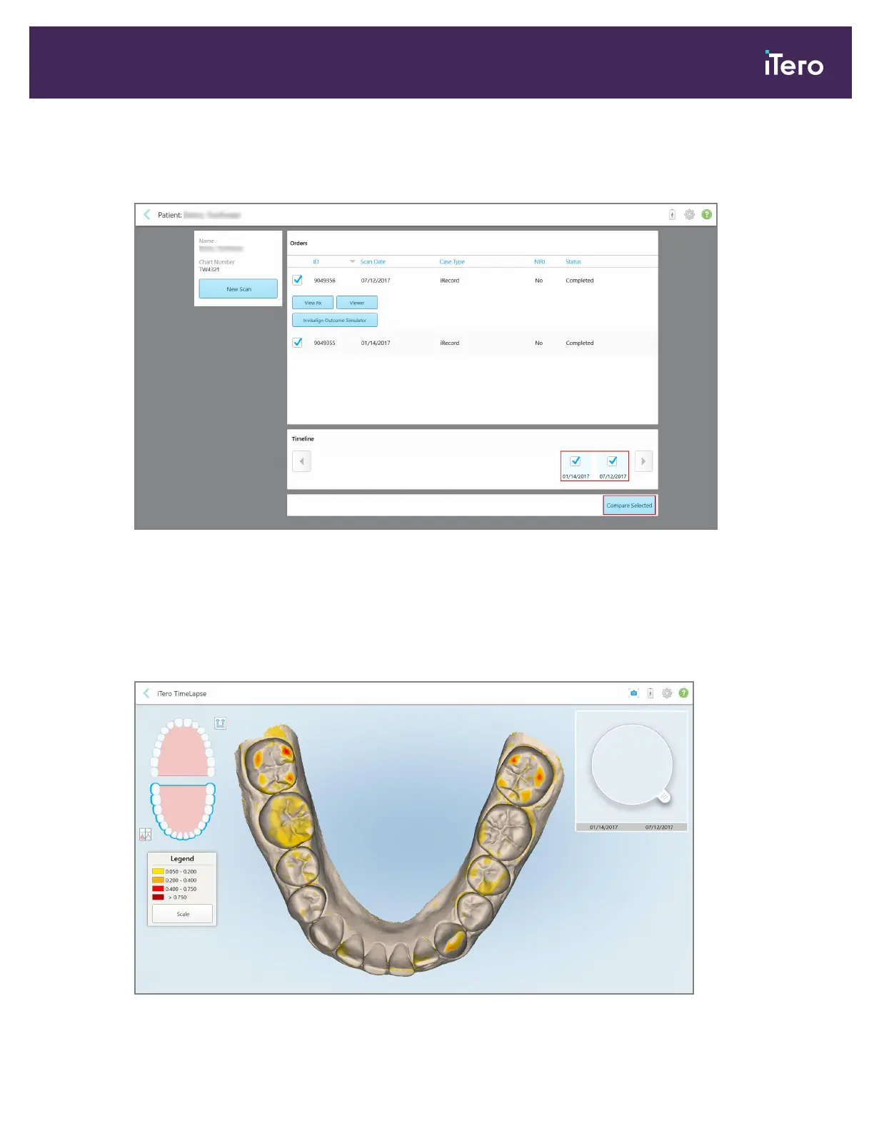 Figure 142: iTero TimeLapse – selecting the scans to compare