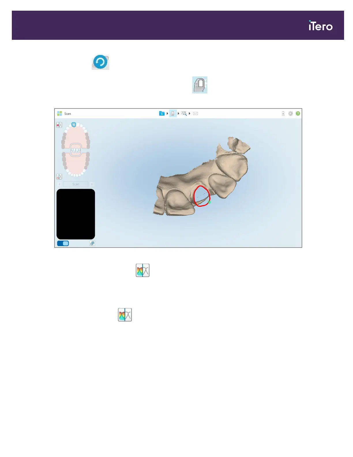 After adjusting the clearance on the patient’s tooth, tap to return to Scan mode and rescan the deleted