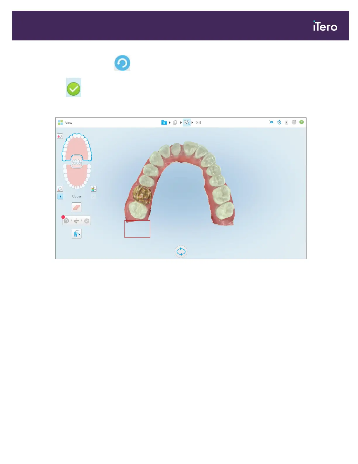 1. After scanning the prepped tooth, ensure that the green hint point is centered on the prepped tooth. Move it