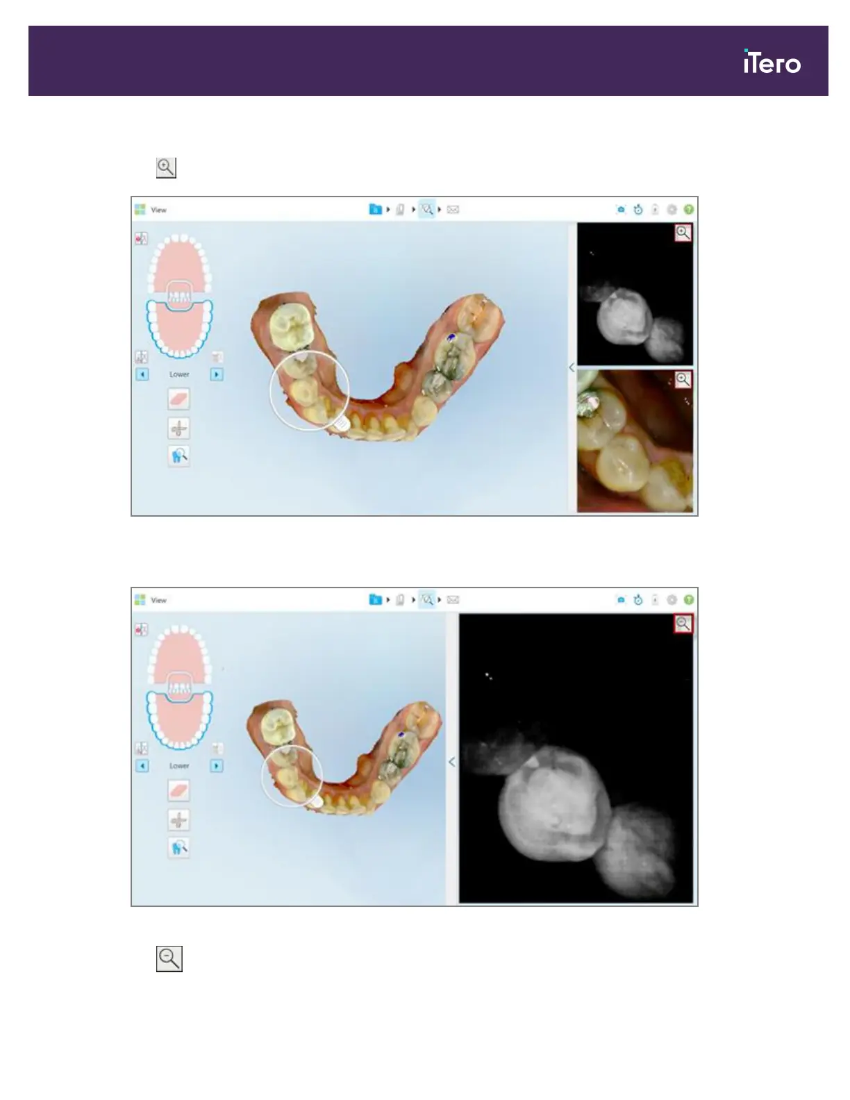 Tap on either the NIRI or the colored intraoral image to zoom in to that view.
