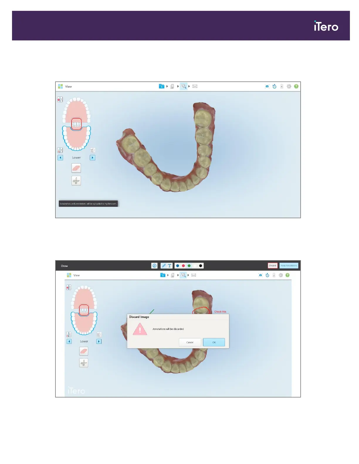 Figure 198: Notification that the screenshots and annotations will be uploaded to MyiTero