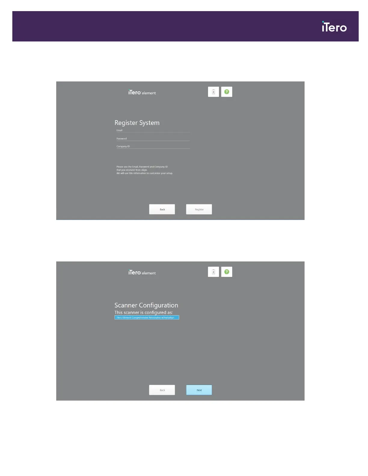 8. Enter your email, password, and company ID in the fields provided. Tap Register and then tap Next.