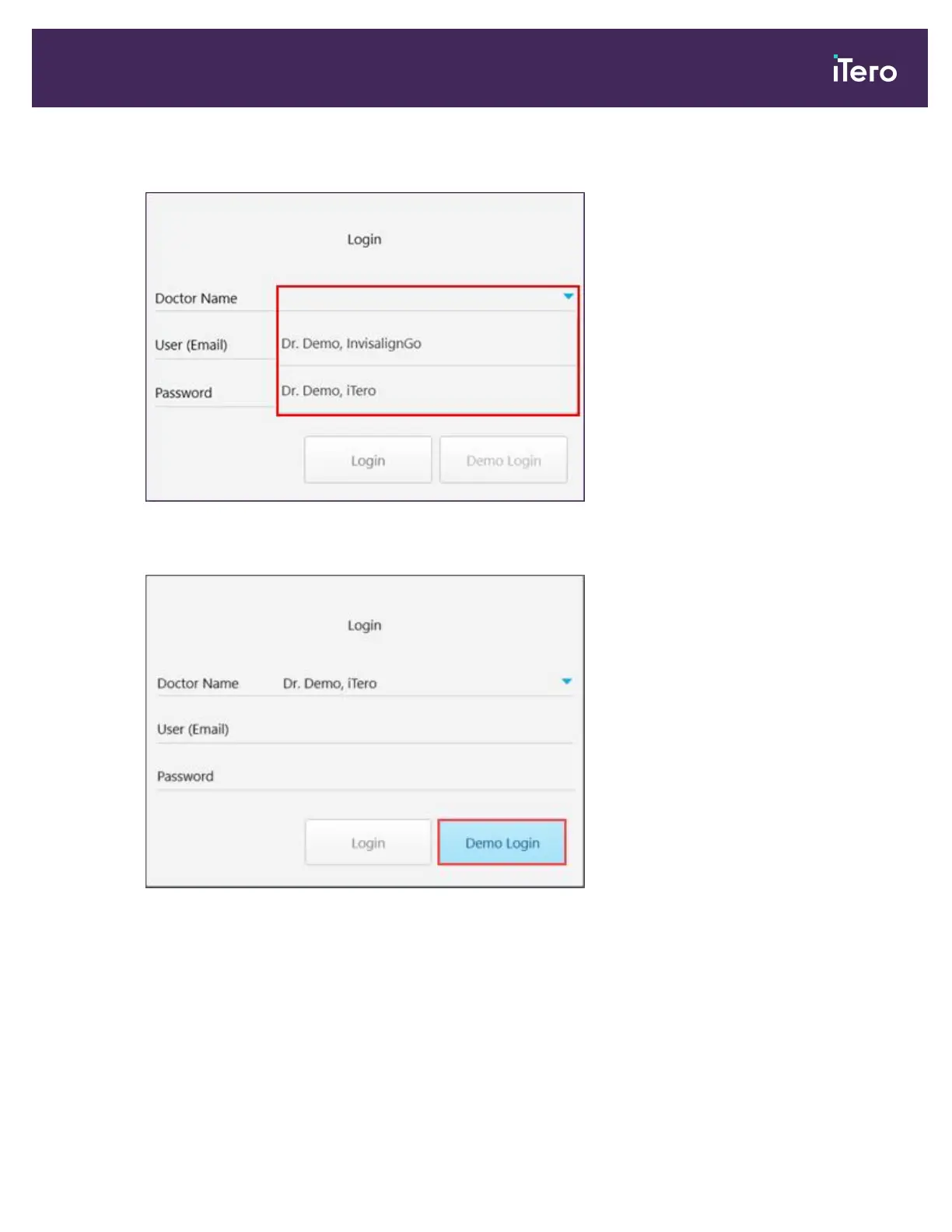 3. To view iTero restorative cases, select the Dr. Demo, iTero user from the Doctor Name drop-down list.