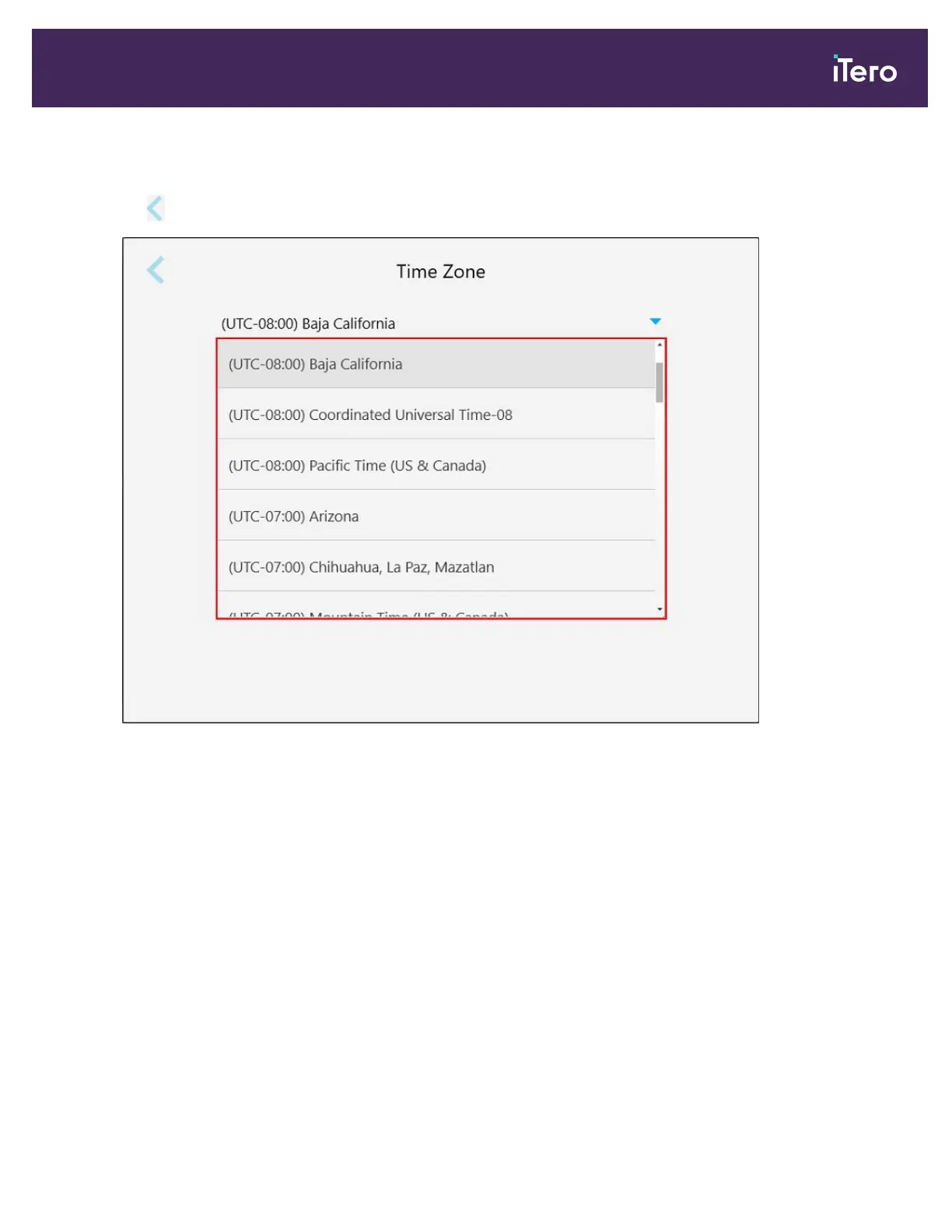 To define the time zone, tap the Time Zone button, select the time zone from the drop-down list, and then