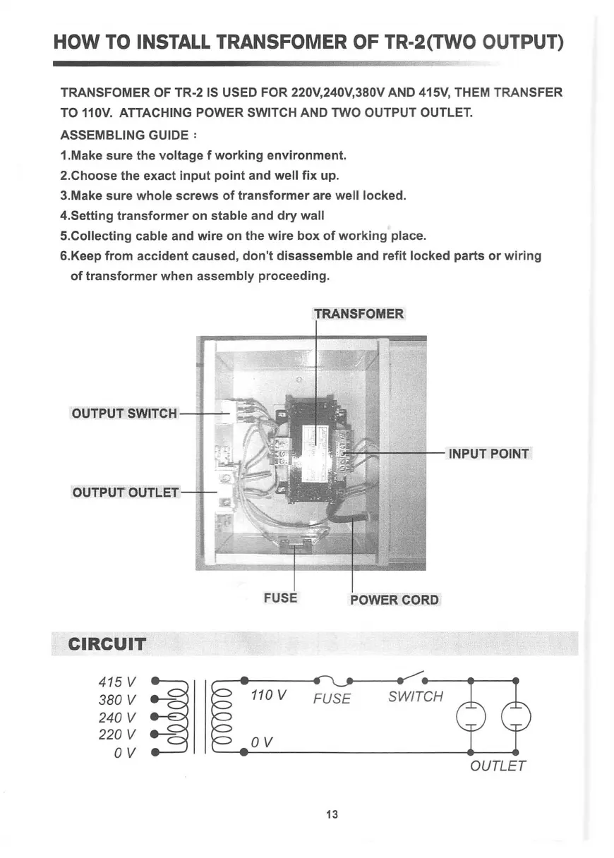 HOW TO INSTALL TRANSFOMER OF TR-2(TW0 OUTPUT)