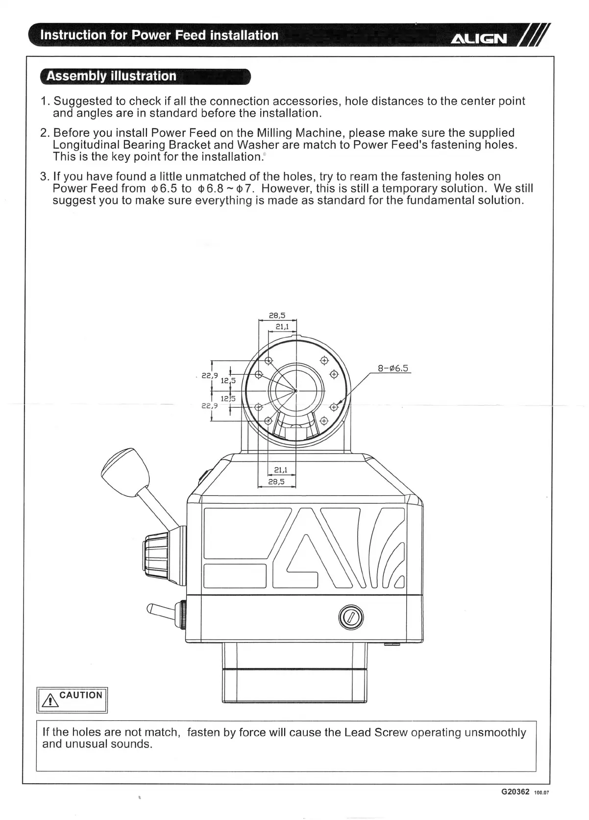 2. Before you install Power Feed on the Milling Machine, please make sure the supplied