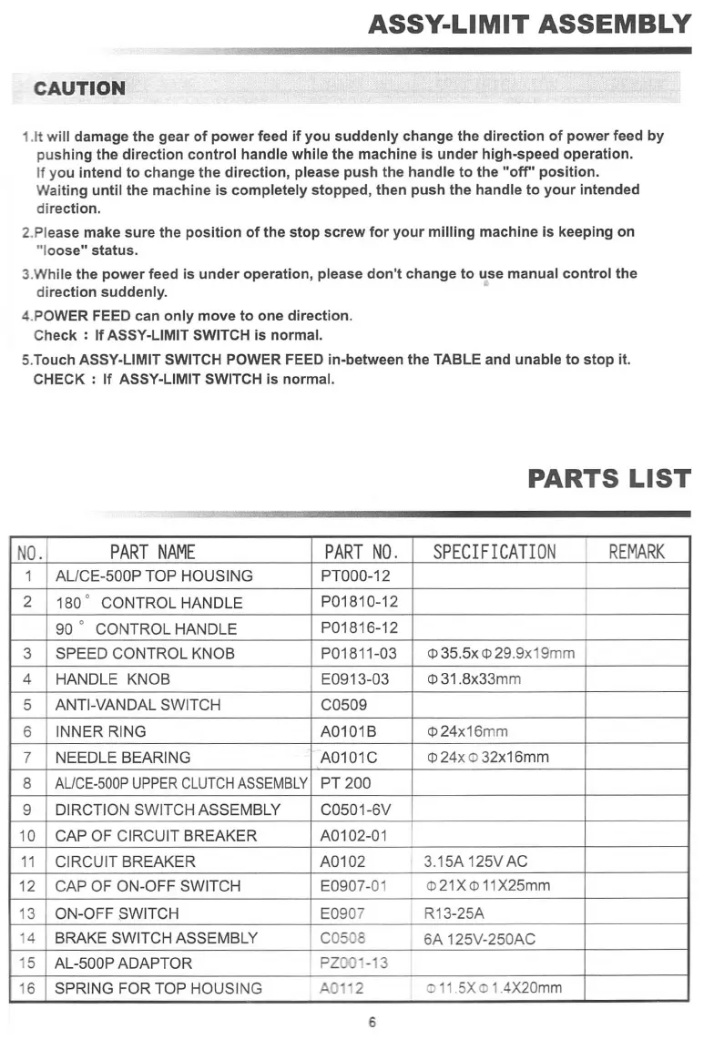 1.1twill damage the gear of power feed if you suddenly change the direction of power feed by