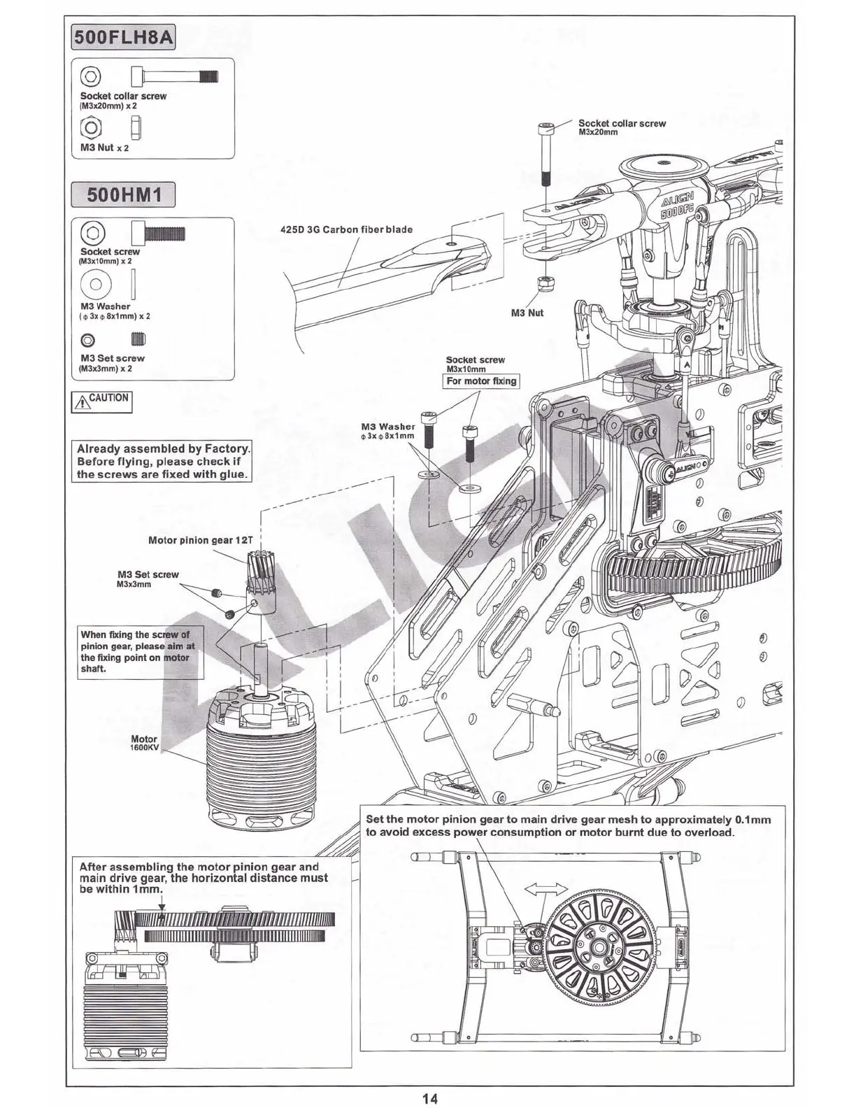 Align Super Combo TREX 500PRO DFC RH50E01XT - Gear and Motor Installation