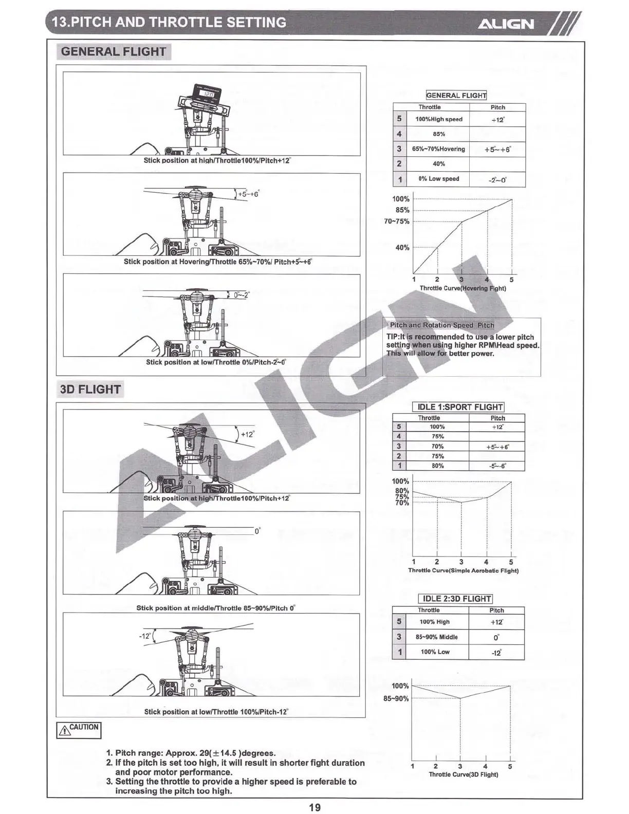 Align Super Combo TREX 500PRO DFC RH50E01XT - 13. Pitch and Throttle Setting