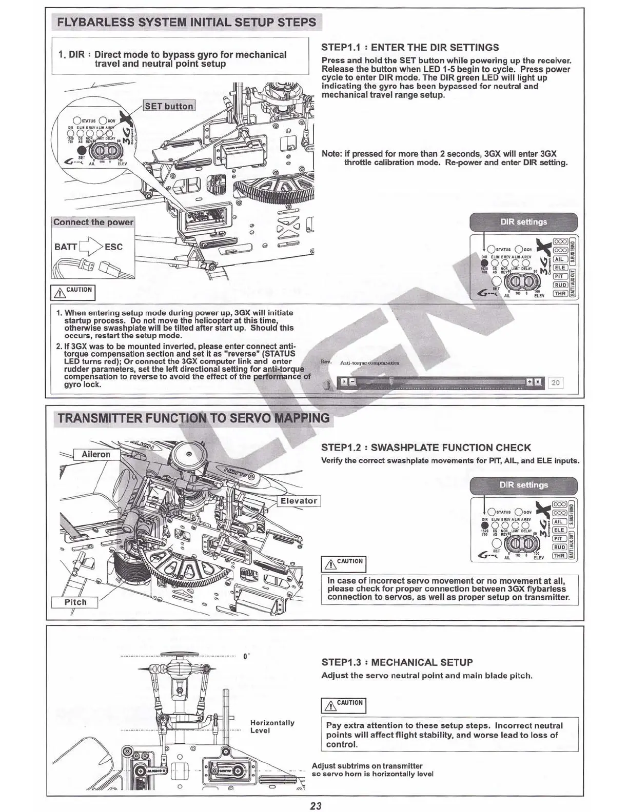FLYBARLESS SYSTEM INITIAL SETUP STEPS