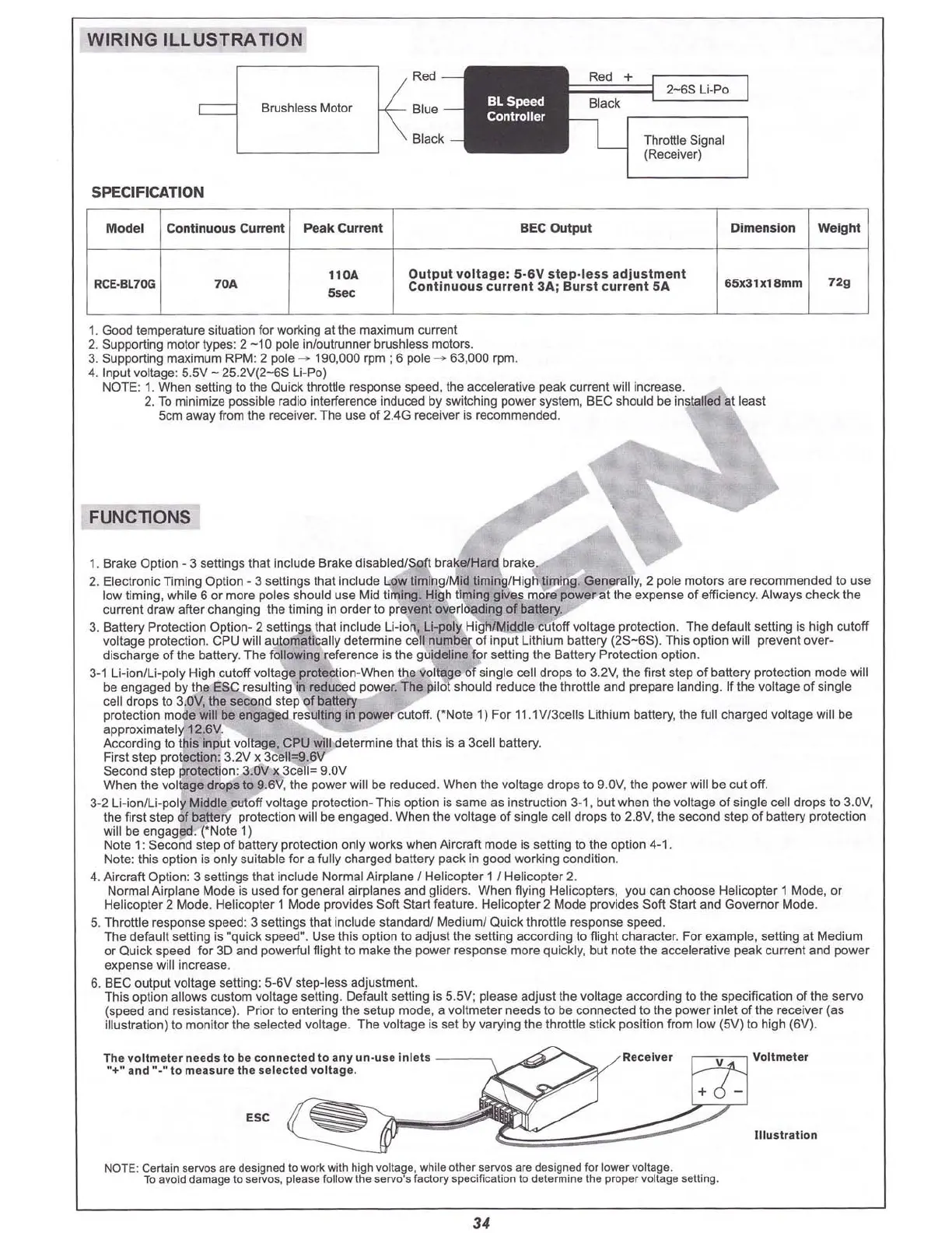 S. BEC output volt age setting: 5-6V step-less adjustment.