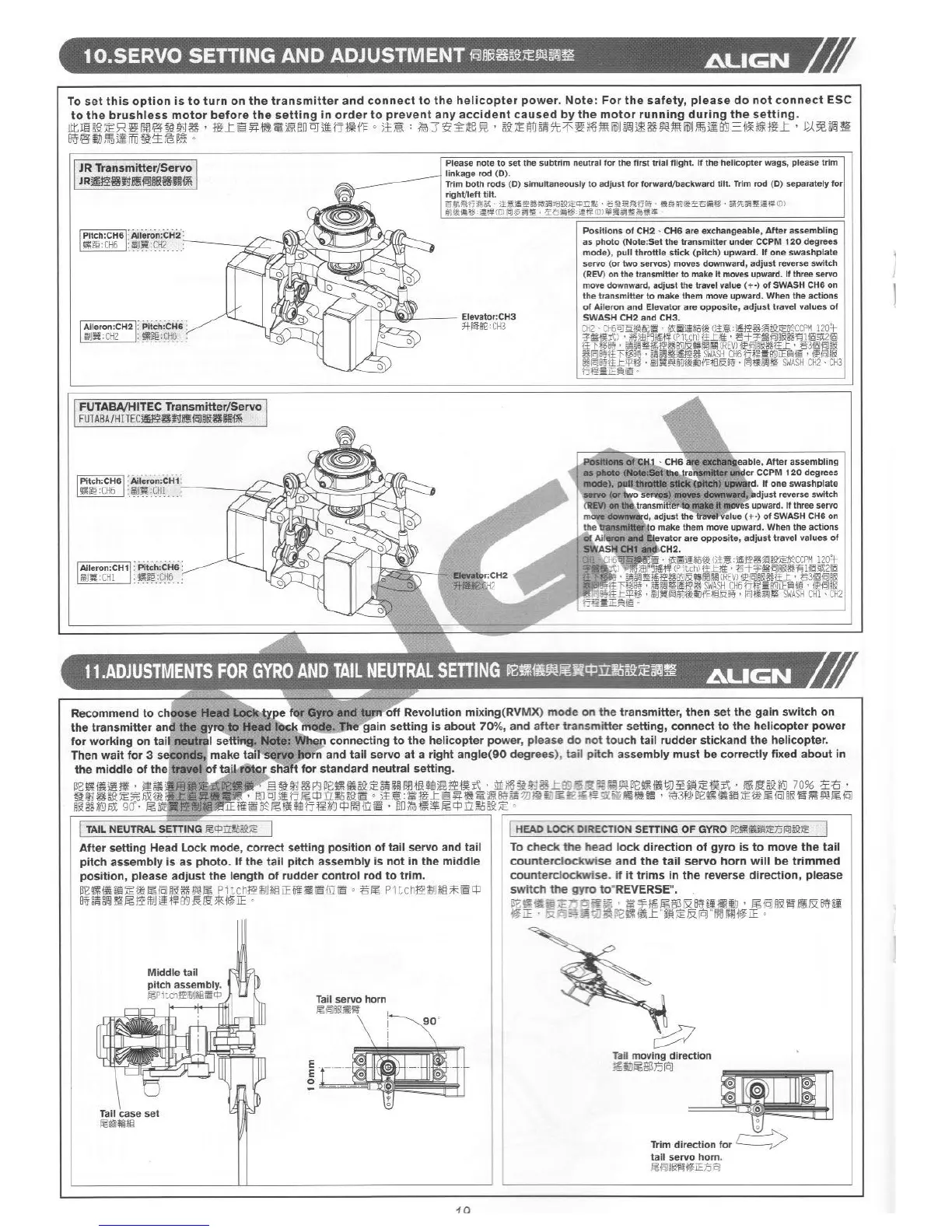 Align T-REX 450PRO - SERVO SETTING AND ADJUSTMENT; JR Transmitter;Servo; FUTABA;HITEC Transmitter;Servo