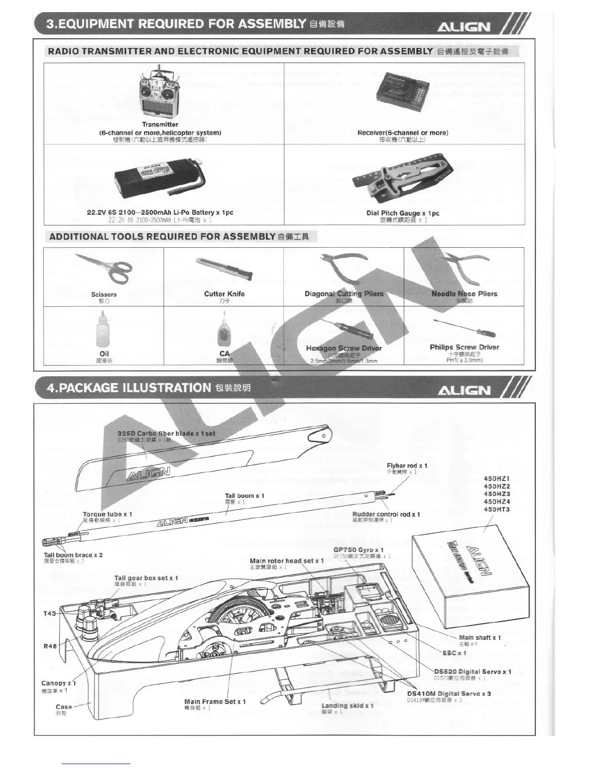 Align T-REX 450PRO - EQUIPMENT REQUIRED FOR ASSEMBLY; RADIO TRANSMITTER AND ELECTRONIC EQUIPMENT REQUIRED FOR ASSEMBLY