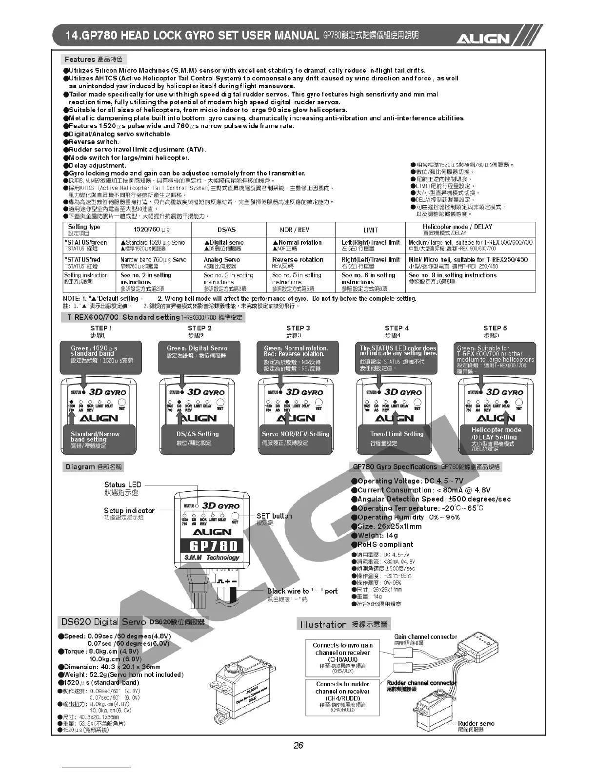 Align T-REX 600ESP - GP780 Head Lock Gyro Set User Manual