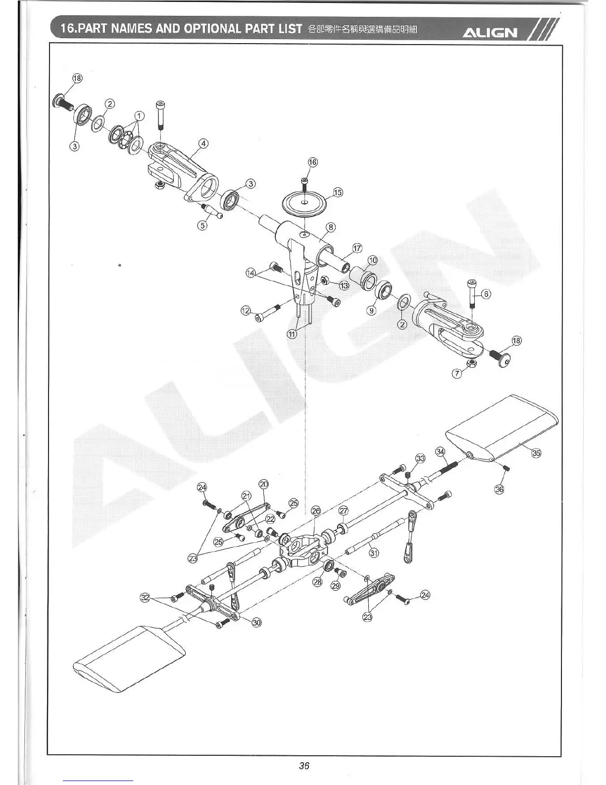 Align T-Rex 700 Nitro Pro - Part Names and Optional Part List