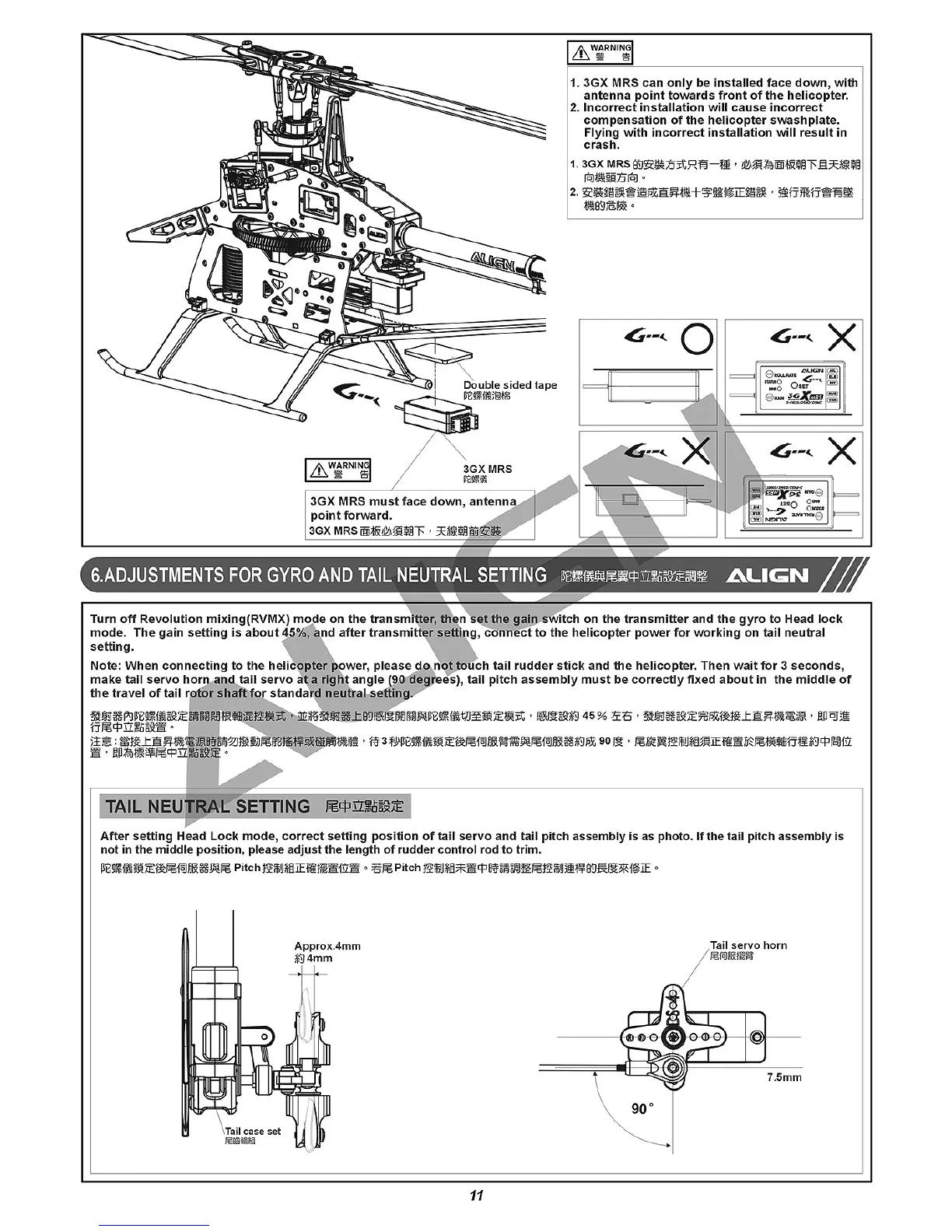 Align Trex 450 Plus - Adjustments for Gyro and Tail Neutral Setting; Tail Neutral Setting