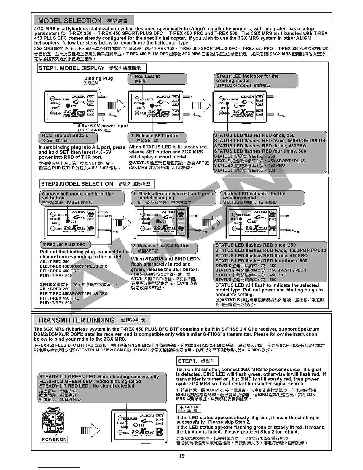 Align Trex 450 Plus - Model Selection; Transmitter Binding; Model Display