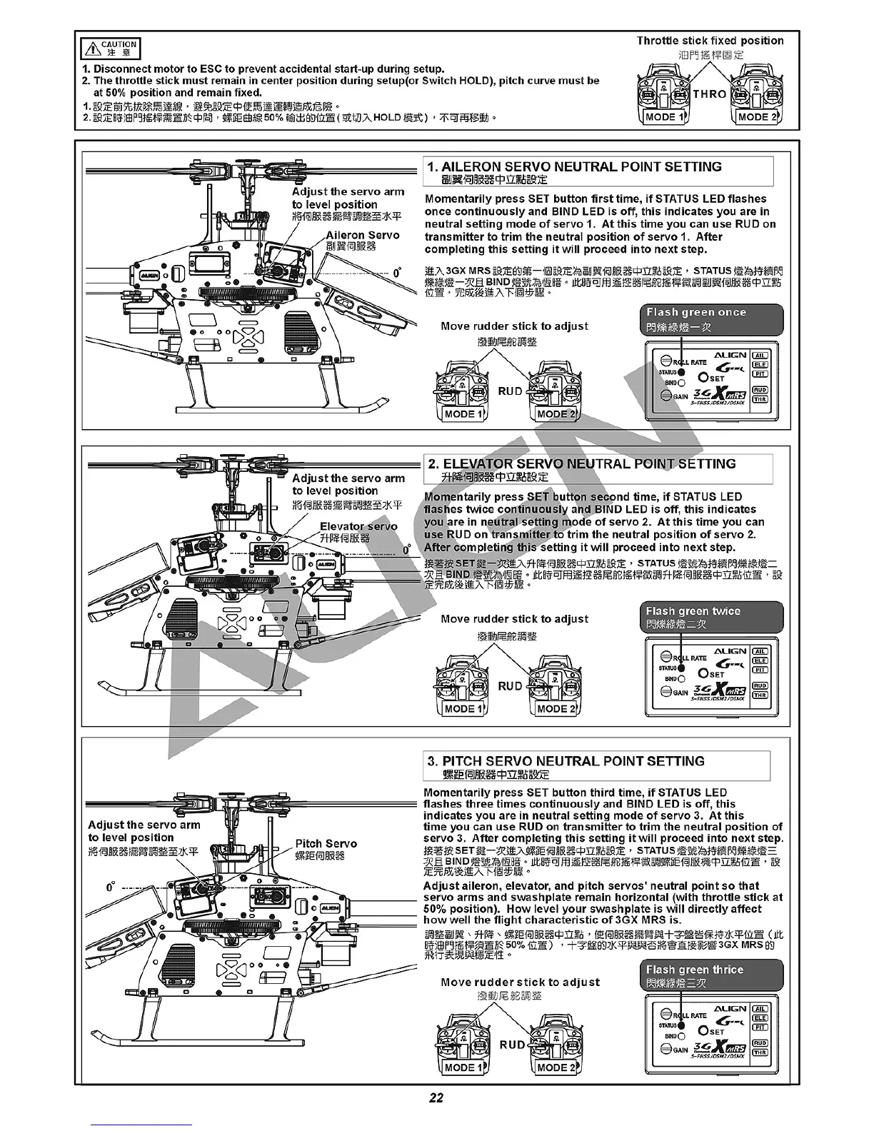 Align Trex 450 Plus - Rudder Gyro Direction and Limit Settings; Rudder Gyro Direction Setting; Rudder Travel Limit Settings