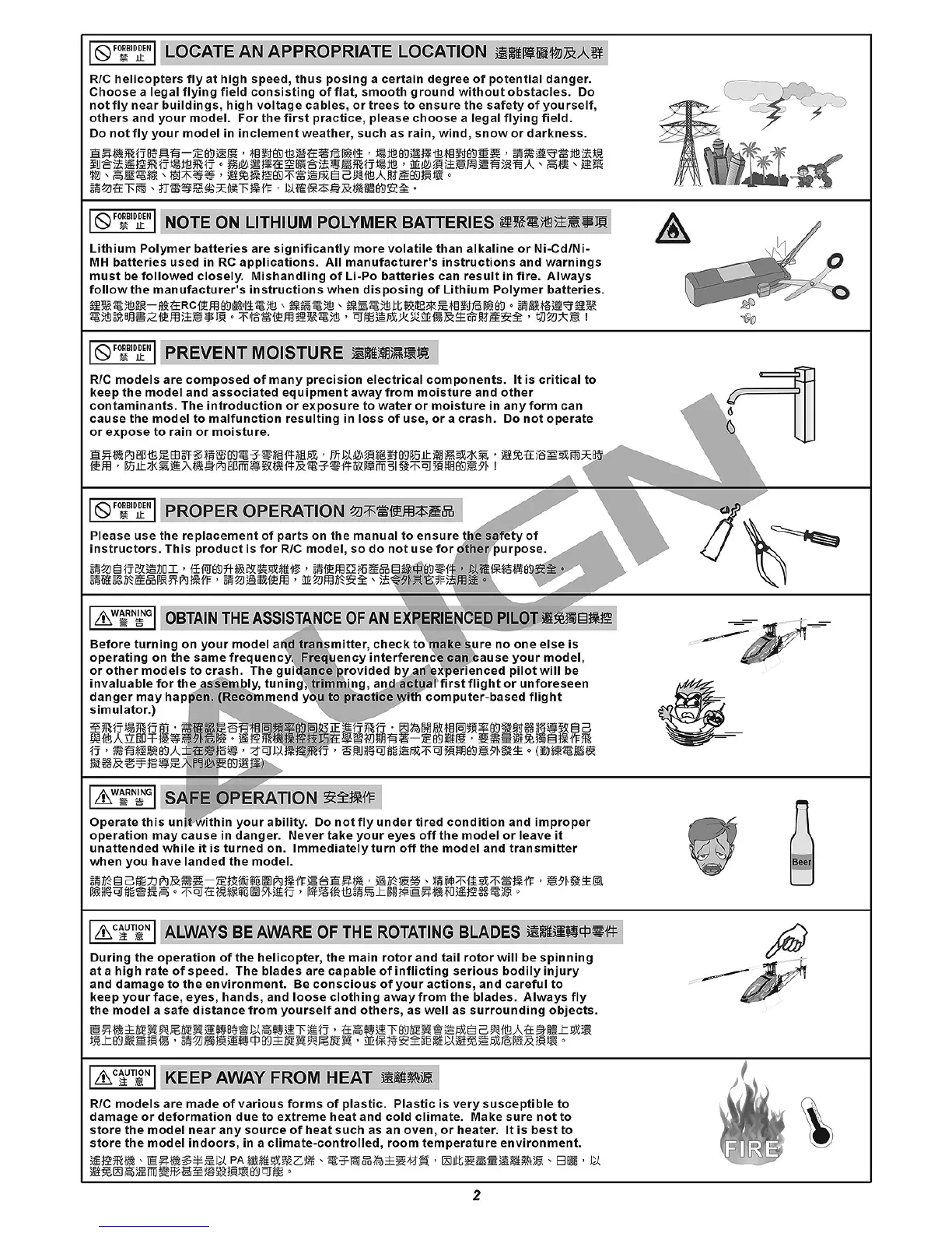 Align Trex 450 Plus - Safety Notes and Precautions; Appropriate Location Selection; Lithium Polymer Battery Precautions; Prevent Moisture Exposure