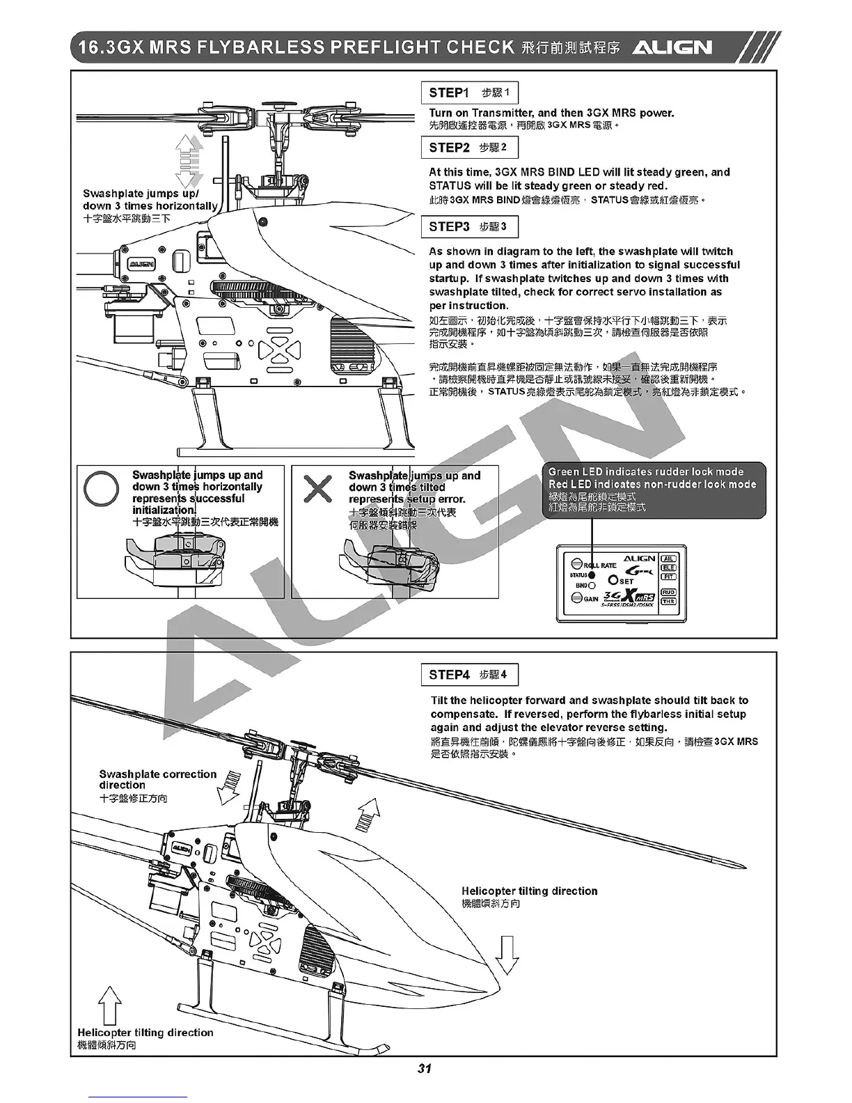 Align Trex 450 Plus - 3 GX MRS Flybarless Preflight Check