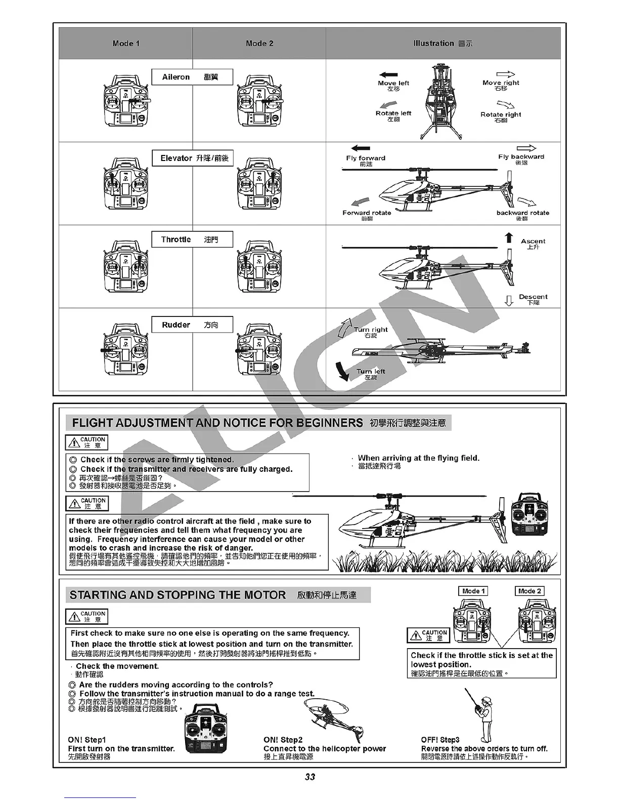 Align Trex 450 Plus - Flight Adjustment and Beginner Notice; Starting and Stopping the Motor