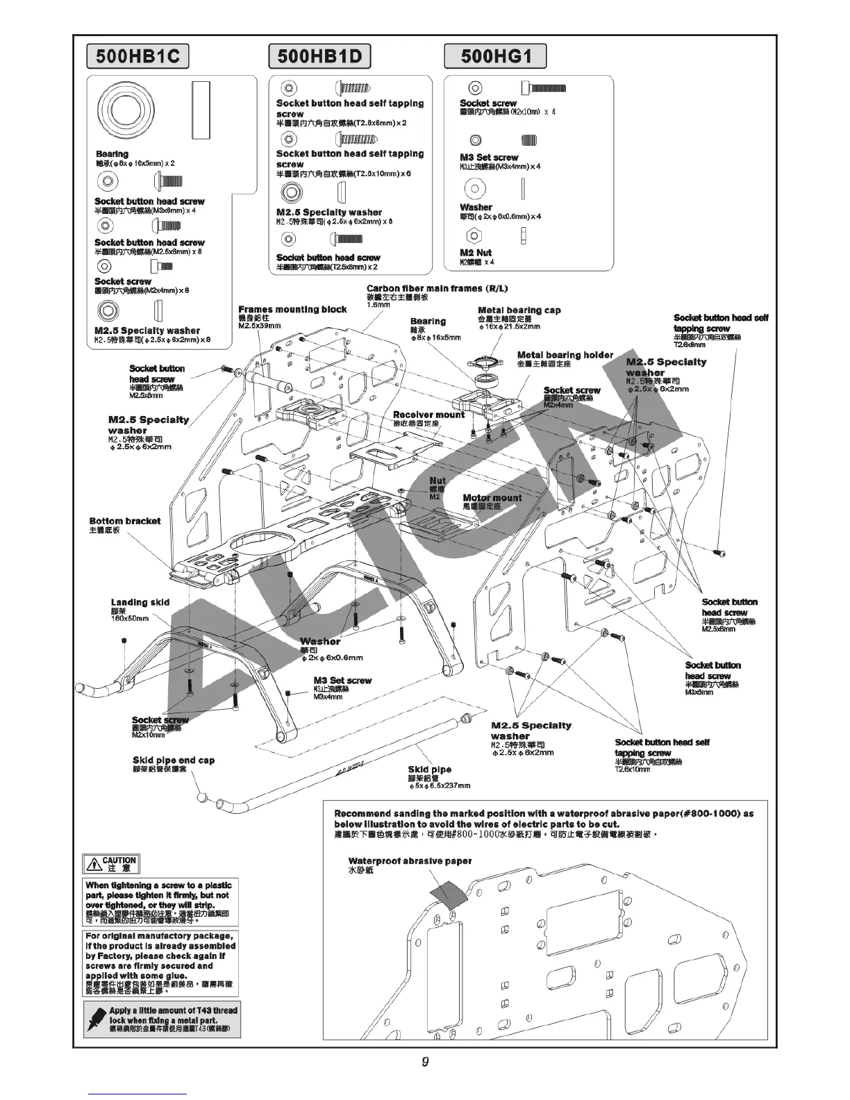 Align Trex 500ESP - Recommended Sanding with Abrasive Paper