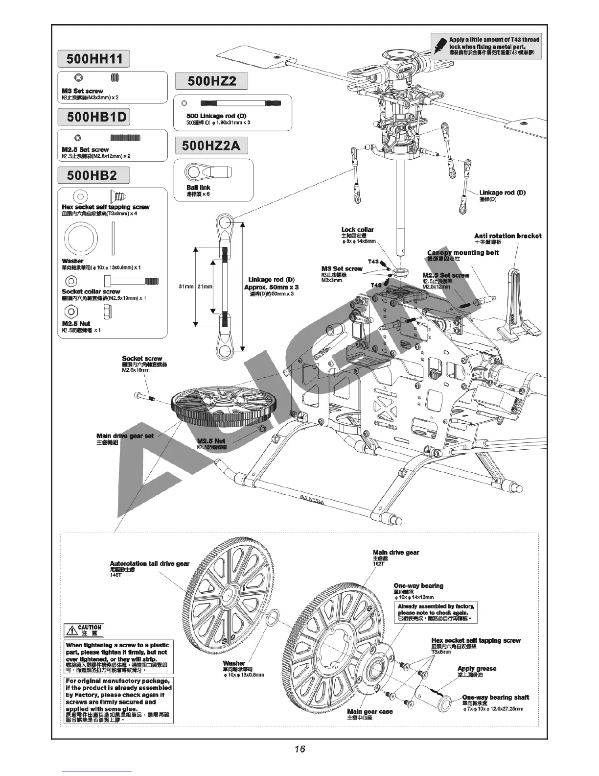 Align Trex 500ESP - ASSEMBLY SECTION; 500 HH11 ASSEMBLY; 500 HB1 D ASSEMBLY; 500 HB2 ASSEMBLY