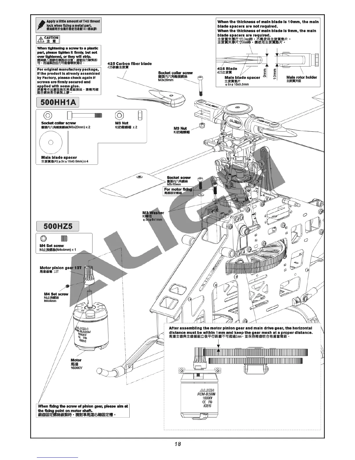 Align Trex 500ESP - ASSEMBLY SECTION; 500 HH1 A ASSEMBLY