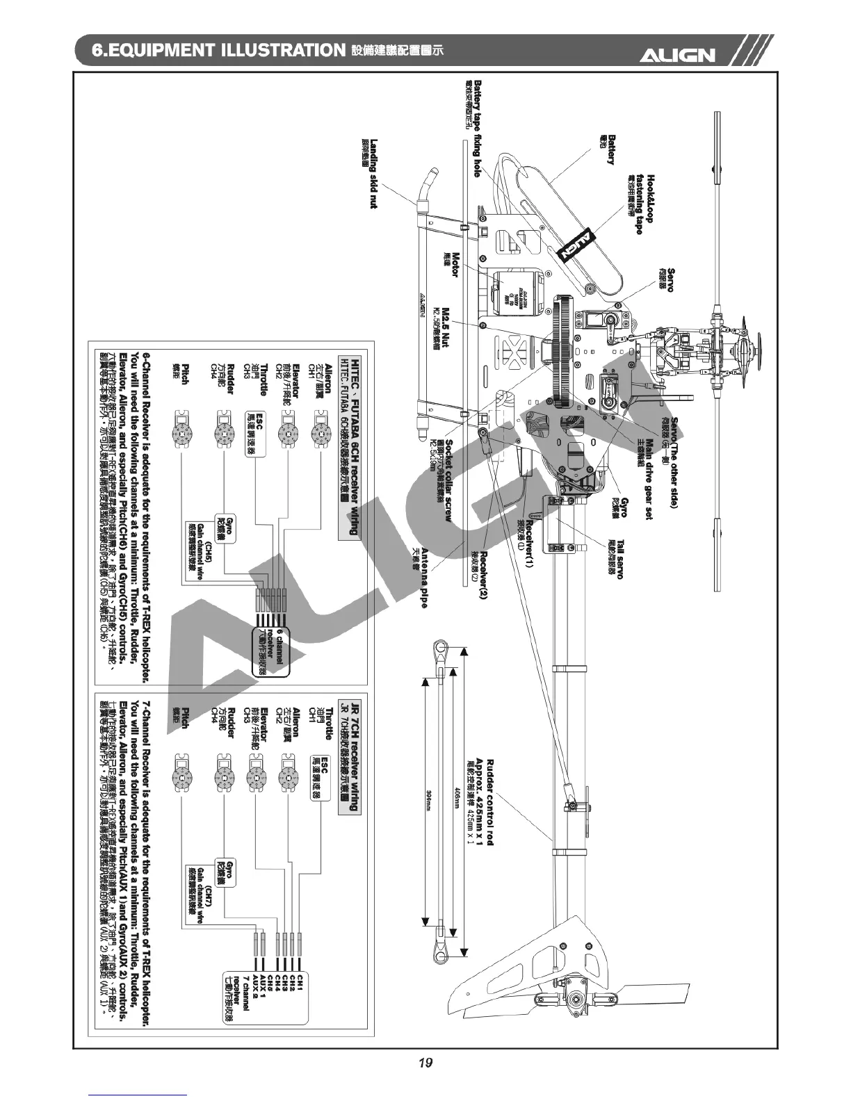 Align Trex 500ESP - EQUIPMENT ILLUSTRATION; RECEIVER WIRING DIAGRAMS