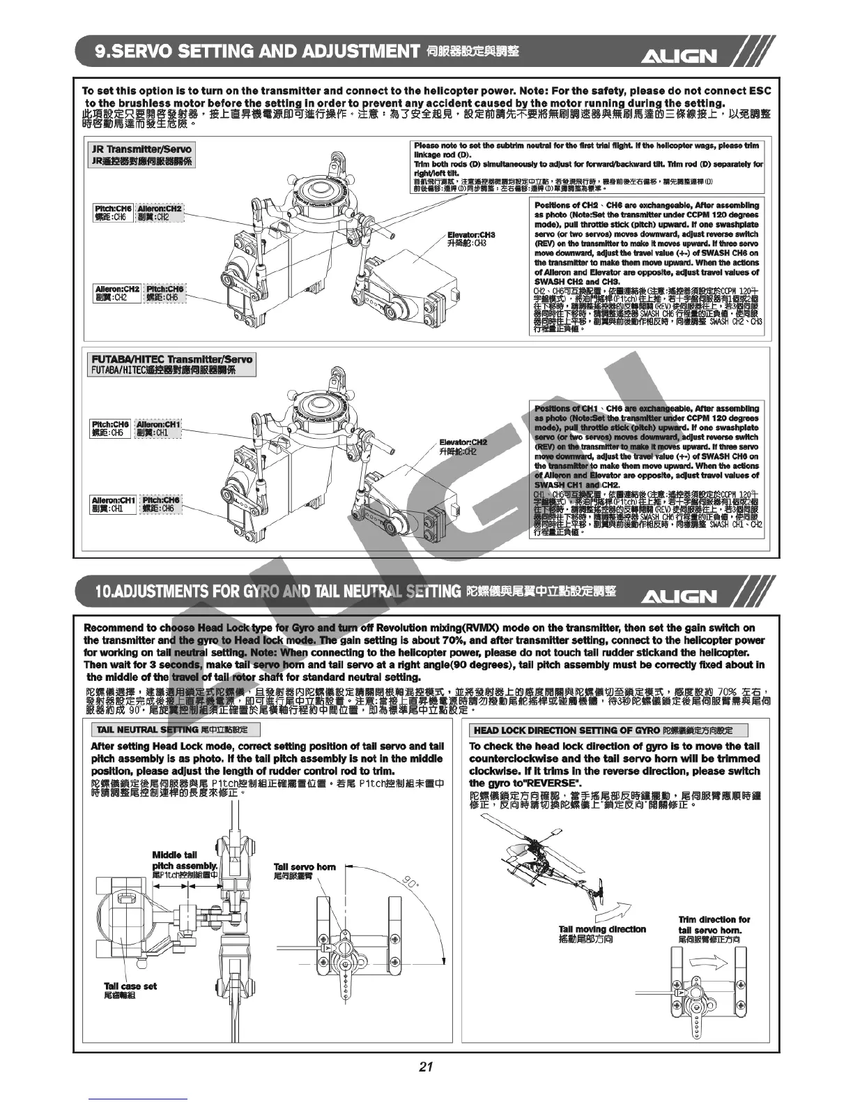 Align Trex 500ESP - SERVO SETTING AND ADJUSTMENT; TRANSMITTER SERVO MAPPING; ADJUSTMENTS FOR GYRO AND TAIL NEUTRAL SETTING; TAIL NEUTRAL SETTING