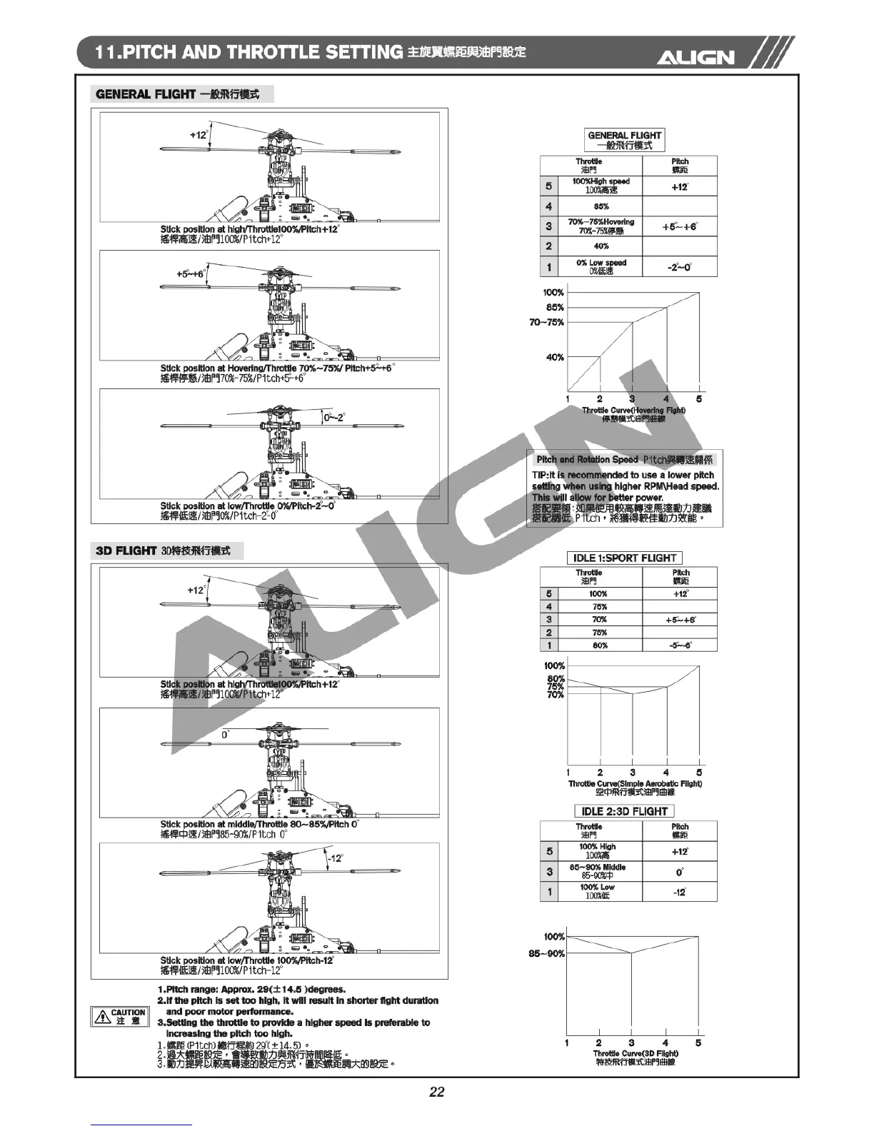 Align Trex 500ESP - PITCH AND THROTTLE SETTING; GENERAL FLIGHT SETTINGS