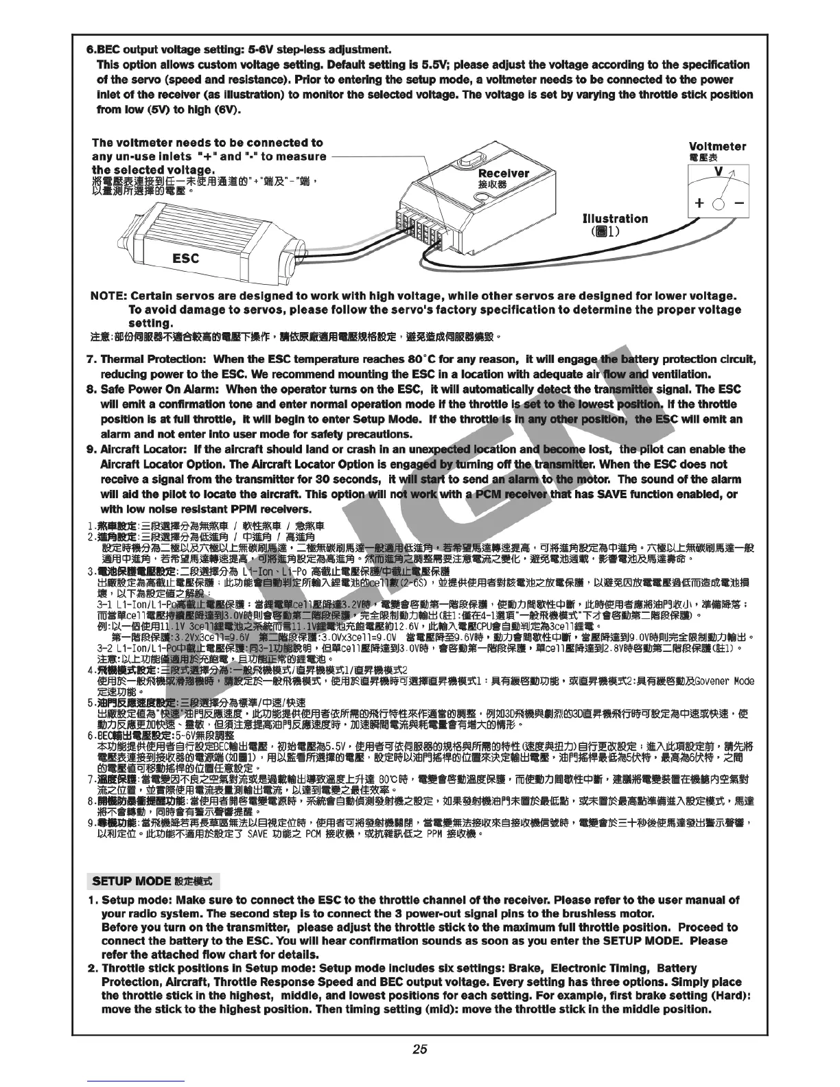 Align Trex 500ESP - BEC OUTPUT VOLTAGE SETTING; ESC SETUP MODE