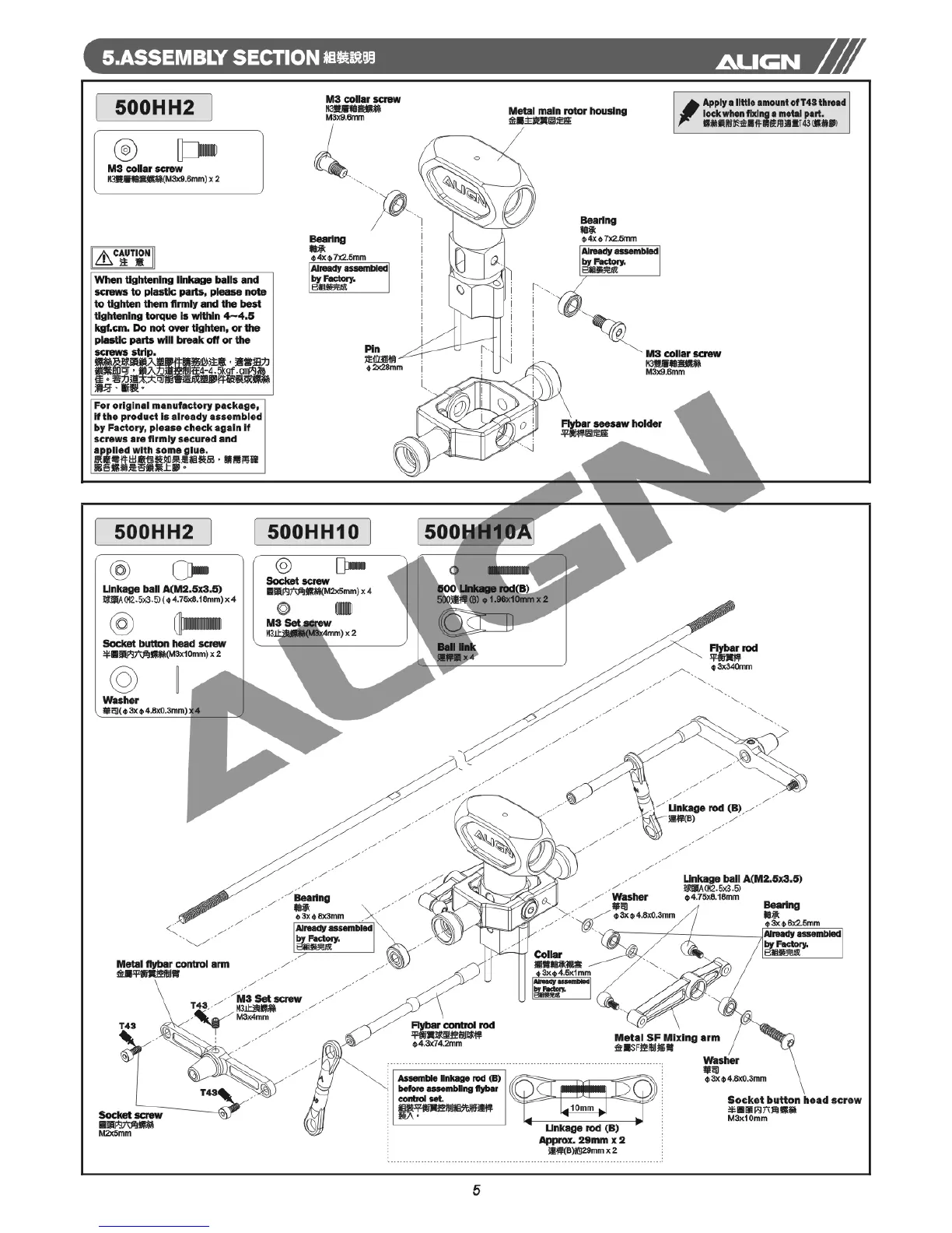 Align Trex 500ESP - ASSEMBLY SECTION; 500 HH2 ASSEMBLY